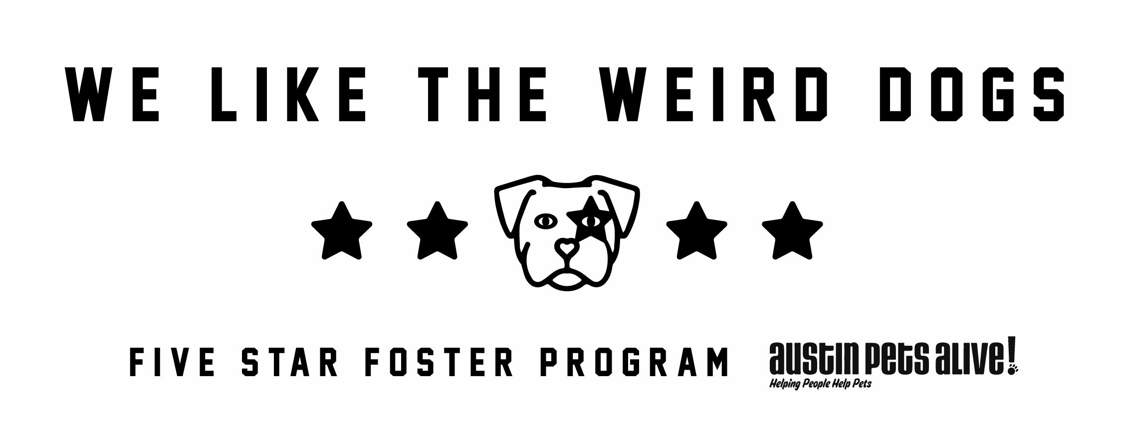 Five Star Fosters provide a temporary home for APA! dogs that may be more challenging to place, many of whom might have behavior or medical needs that require extra patience, training and support. Austin Pets Alive! takes in around 5,000 dogs every year that are at risk of euthanasia in shelters that don’t have enough space or resources to care for them. Many of these dogs find loving forever homes relatively quickly after making their way to safety at APA!. Others, however, may have a harder time adjusting to life inside and outside of the shelter. These dogs, in particular, need a dedicated foster home where they can decompress, heal, learn and let their true personalities shine through. The Five Star Foster Program was created to support and celebrate the incredible group of fosters that go above and beyond for this most in need population of dogs.